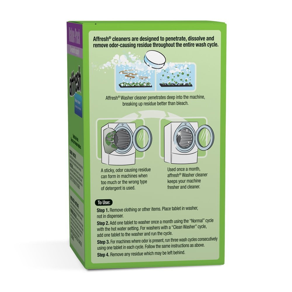However if your washing machine is too dirty or has a great amount of mold you may need to use a couple of tablets for the first run. Actually many newer models have a special washer cleaning cycle. Affresh contains sodium percarbonate oxidizer sodium carbonate builder glucono-delta-lactone processing aid polyethylene glycol processing aid sodium acetate processing aid and fragrance sweet smell.